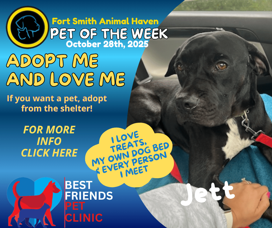 Jett’s owner passed away in March and that’s how he ended up at Fort Smith Animal Haven. ![]()