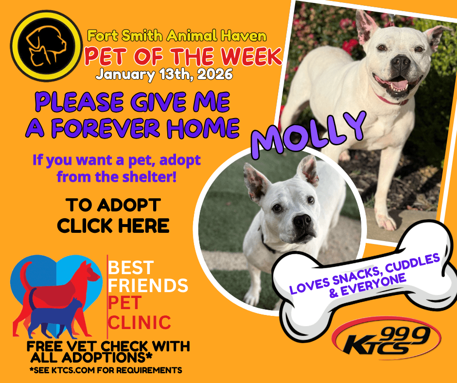 She is microchipped and was originally returned to her owner, but ended up back at the shelter from being on the Fort Smith streets- when tried the phone number again on the microchip, it was disconnected. So we are not sure what happened with Molly and her owners.